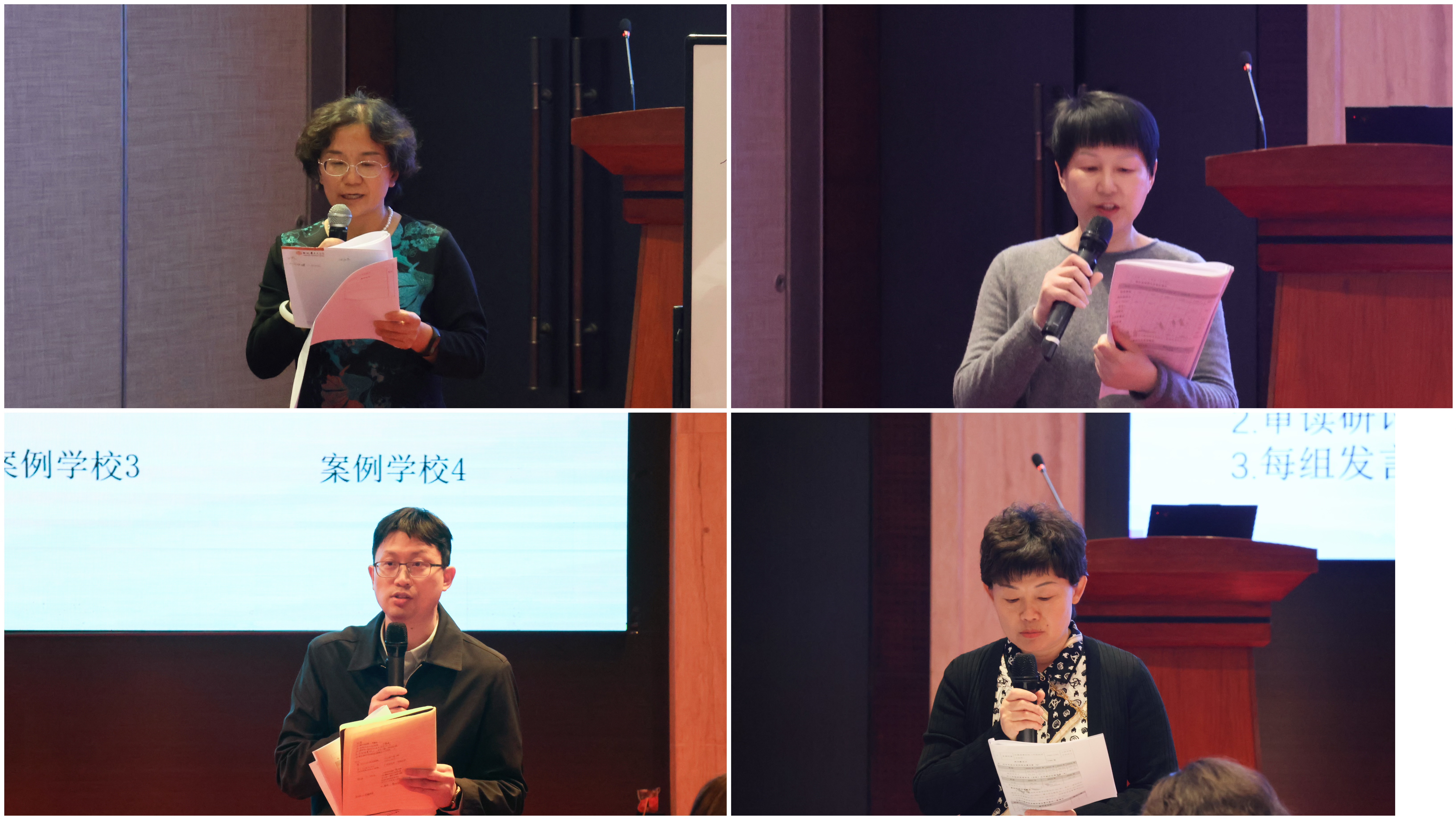 厉岩教授(左上)、俞方教授(右上)、朱汉祎教授(左下)、姜宏教授(右下)分别代表作小组分享